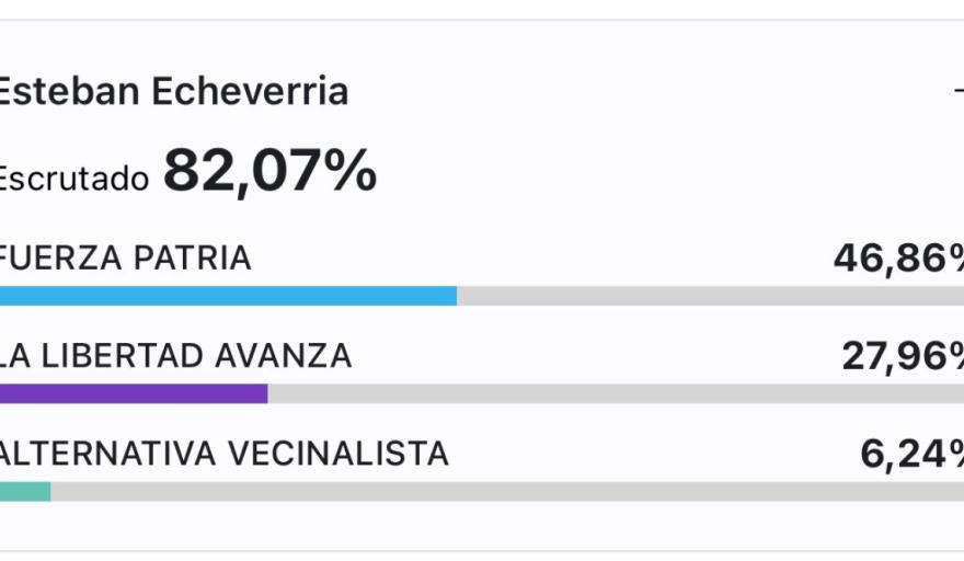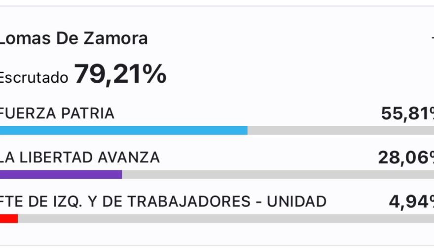 Por último, la esposa del intendente Fernando Gray, Magui Gray, obtuvo el 47 por ciento, aunque su resultado hay que enmarcarlo en que si bien Magui jugó para Fuerza Patria, el jefe comunal ya anunció que será candidato a diputado nacional por otro espacio: lo hará por Unión Federal en clara confrontación con el peronismo.
