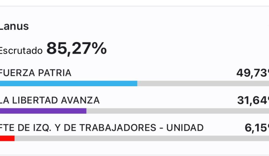 En Lanús, fue el lugar de la región que menos puntos obtuvo el oficialismo local. El candidato del intendente Julián Alvarez, Leandro “Lalo” Decuzzi no llegó al 50 por ciento de los votos, pero obtuvo una ventaja de 18 puntos sobre la lista encabezada por Ignacio Moroni, referente de La Libertad Avanza.