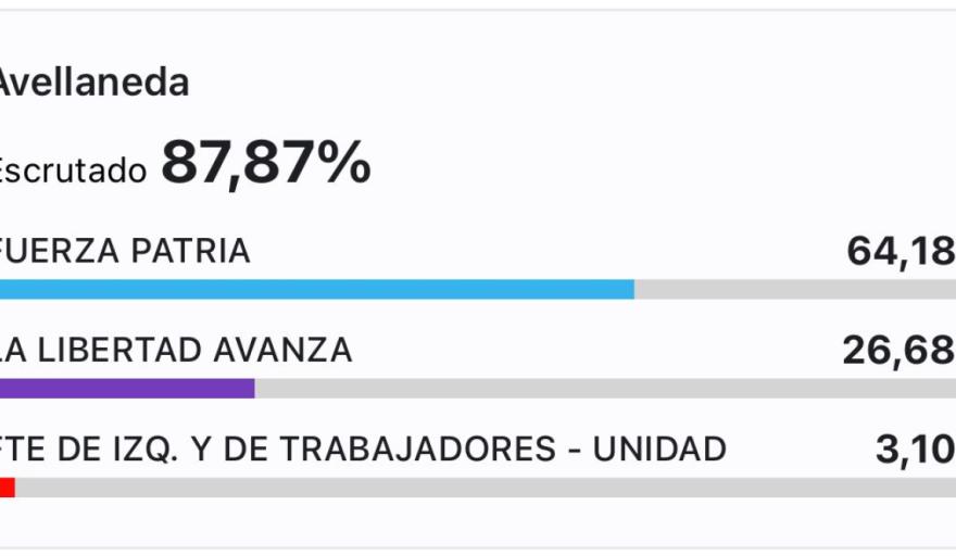 El que más ventaja sacó fue en Avellaneda, donde la lista a concejales encabezada por el propio intendente Jorge Ferraresi obtuvo el 64,31 por ciento contra el 31,94 de la Libertad Avanza encabezada por el referente del espacio Cristian Frattini.