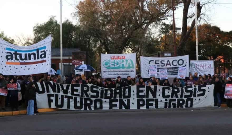 Docentes y no docentes realizan un paro de 24 horas y estudiantes mantienen facultades tomadas. Juan Donati, secretario general de ADUNLA, advirtió que “Javier Milei está atacando una de las pocas instituciones reconocidas y defendidas por la sociedad, que es el sistema universitario”.