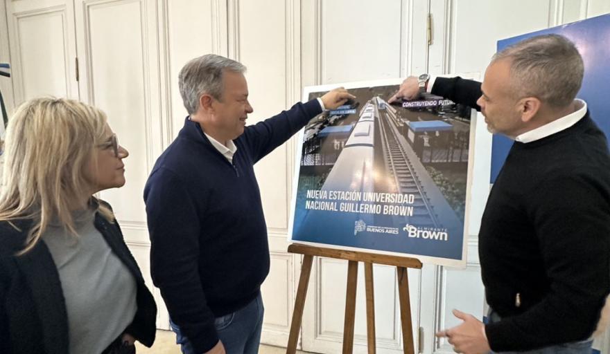 El intendente de Almirante Brown, Mariano Cascallares, mantuvo una reunión de trabajo con los secretarios de Infraestructura y de Prevención y Seguridad Ciudadana, Fernando Lorenzo y Paula Eichel, evaluando el avance del proceso licitatorio de la nueva Estación de Trenes de la Universidad Nacional Guillermo Brown (Unab).