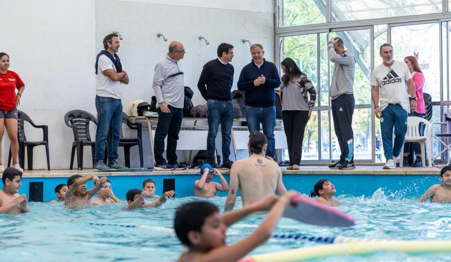 El intendente de Almirante Brown, Mariano Cascallares, acompañó a los estudiantes que participan del programa “Todos al Agua” en el Polideportivo de Ministro Rivadavia, durante una recorrida junto al subsecretario de Deportes bonaerense, Cristian Cardozo.