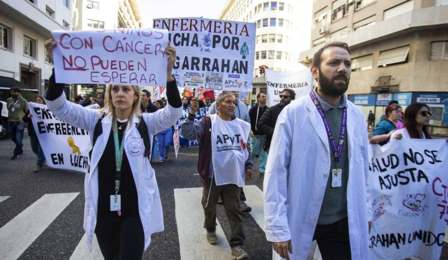 #Ahora En el marco del paro de 24 h de las y los trabajadores del Hospital Garrahan Mariana Chiacchio, asesora legal de @APyT_Garrahan, Bazán y Sabín Paz del @CELS_Argentina junto a Norma Lezana, Secretaria General de APyT, hacen una mesa redonda sobre como seguir la lucha en la… pic.twitter.com/pOXtJHrqNq