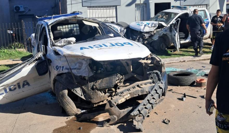 Cuatro policías resultaron heridos cuando chocaron dos patrulleros que estaban en plena persecución en González Catán. Fueron trasladados al Hospital Simplemente Evita.