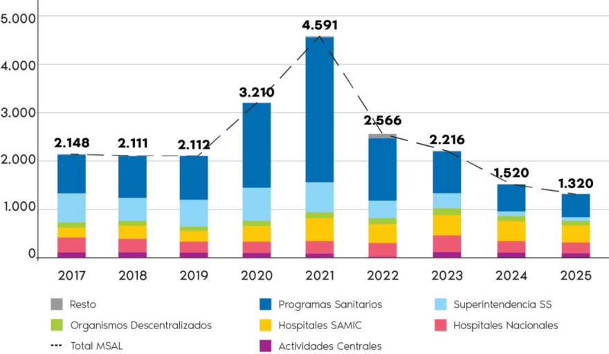 En esos años, el presupuesto ejecutado “registra una caída real del 31por ciento. En 2025 se observa “una nueva reducción del 13 por ciento respecto del año anterior, acumulando una disminución real del 34 por ciento en relación con 2023”. La reducción del gasto, alerta la entidad, “se ve agravada por una sub-ejecución persistente de los créditos vigentes, particularmente en partidas vinculadas a la atención directa, el sostenimiento de efectores públicos y la provisión de bienes y servicios esenciales”.