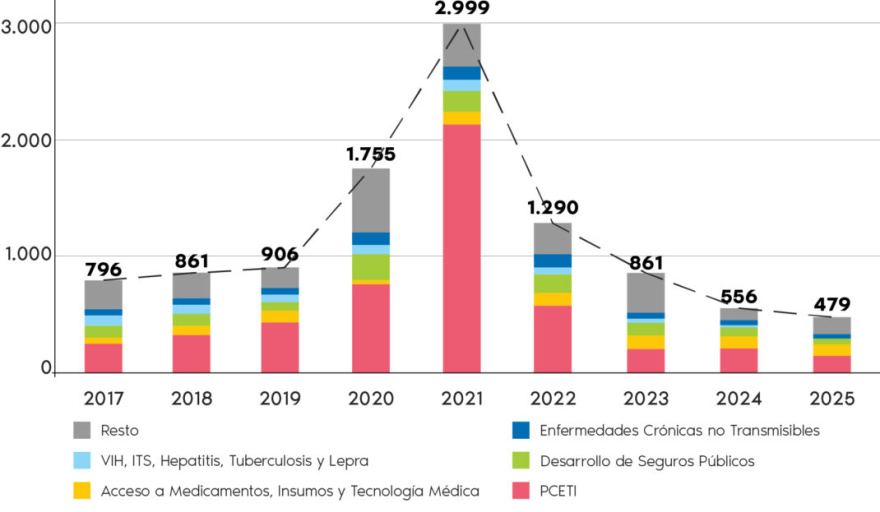 Este conjunto de decisiones configura “un cambio estructural en el rol del Estado como rector y coordinador del sistema sanitario”. Este proceso se expresa de manera particularmente crítica en áreas estratégicas como el acceso a medicamentos esenciales y la formación de la fuerza laboral en salud, “donde las decisiones adoptadas impactan directamente sobre la continuidad de tratamientos y la disponibilidad futura de personal sanitario”. “La evolución presupuestaria de los principales organismos nacionales refuerza este diagnóstico, mostrando deterioros significativos en términos reales que afectan la capacidad operativa, las funciones de regulación y la sostenibilidad de políticas dirigidas a poblaciones vulnerables”, agregó el reporte.