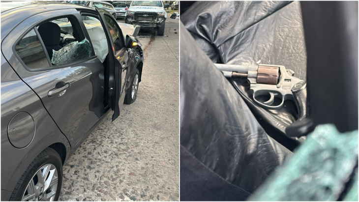 En el interior del Fiat Cronos gris se encontró un revólver calibre 38 sobre el asiento del acompañante, mientras que la camioneta Chevrolet S10, que había sido robada, fue hallada más tarde abandonada en el barrio El Ceibo de Chascomús, pero ya sin ocupantes.