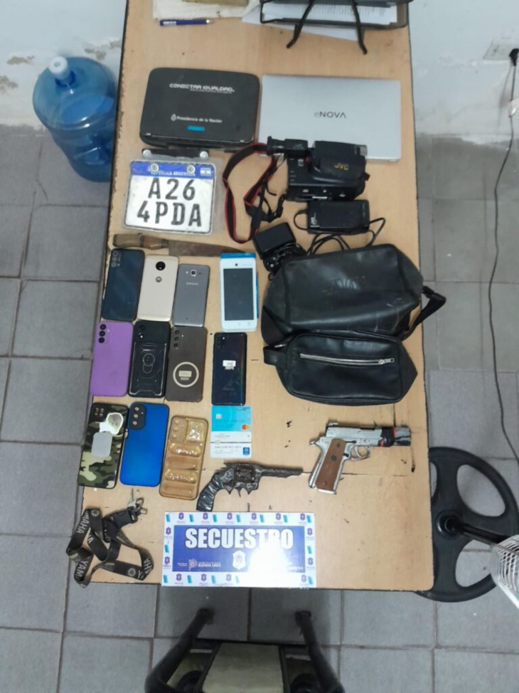 Durante el procedimiento se secuestraron tres motocicletas, dos de ellas con pedido de secuestro activo, siete teléfonos celulares, dos réplicas de armas de fuego y otros elementos de interés para la causa. Asimismo, se logró recuperar la motocicleta sustraída a la víctima.