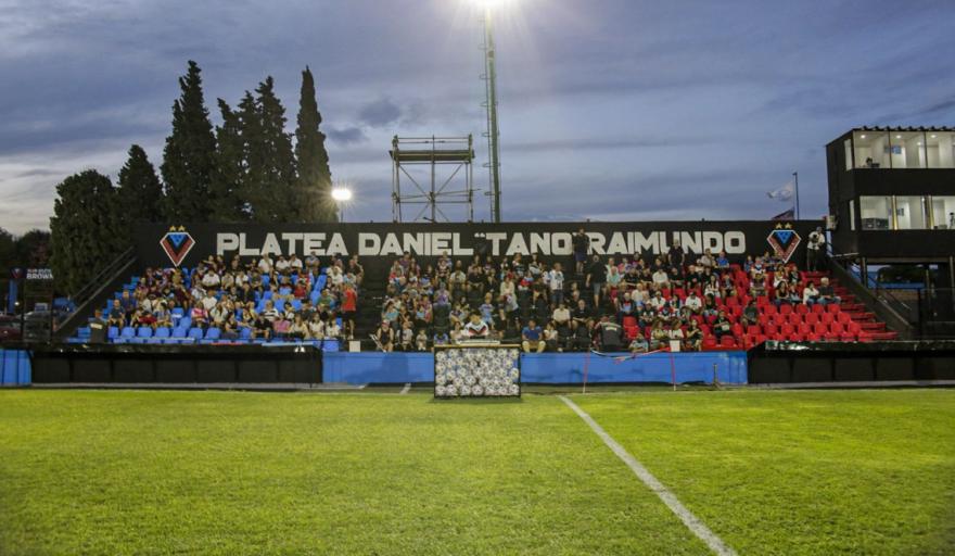 La flamante tribuna, de 25 metros de largo y con capacidad para 360 butacas, lleva el nombre “Daniel ‘Tano’ Raimundo”, en homenaje al histórico referente del club recientemente fallecido.