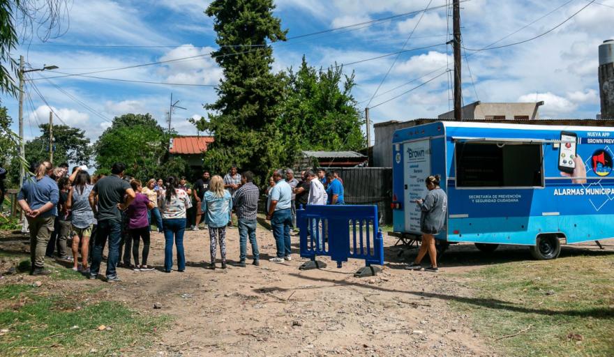 Durante el encuentro, personal de la Secretaría de Prevención y Seguridad Ciudadana brindó explicaciones sobre el funcionamiento del sistema y asesoró a los vecinos en la descarga y configuración de la aplicación Brown Previene, que permite activar la alarma y comunicarse con el Centro de Operaciones Municipal (COM).