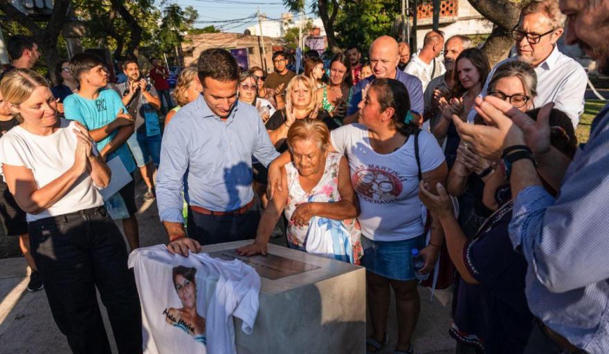 El intendente de Lanús, Julián Álvarez encabezó junto a los titulares del Banco de la Provincia de Buenos Aires y de la Fundación BAPRO, Juan Cuattromo y Micaela Ferraro respectivamente, la inauguración de la plaza en homenaje a una vecina del barrio que fue víctima de femicidio el 7 de junio del 2016.