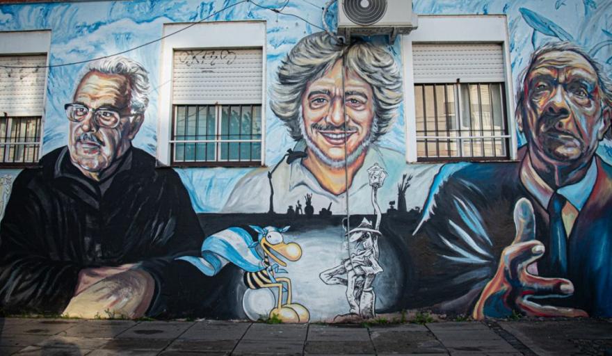 Además, en paralelo, se llevaron adelante tareas de restauración de los retratos de Caloi, Soldi y Borges ubicados sobre la avenida Espora.
