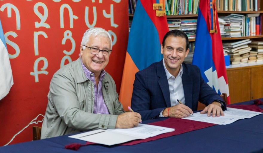 En el marco del Día de Acción por la Tolerancia y el Respeto entre los Pueblos, el intendente de Lanús, Julián Álvarez firmó un convenio de colaboración junto a la Asociación Cultural Armenia en el Colegio Armenio Jrimian de Valentín Alsina.