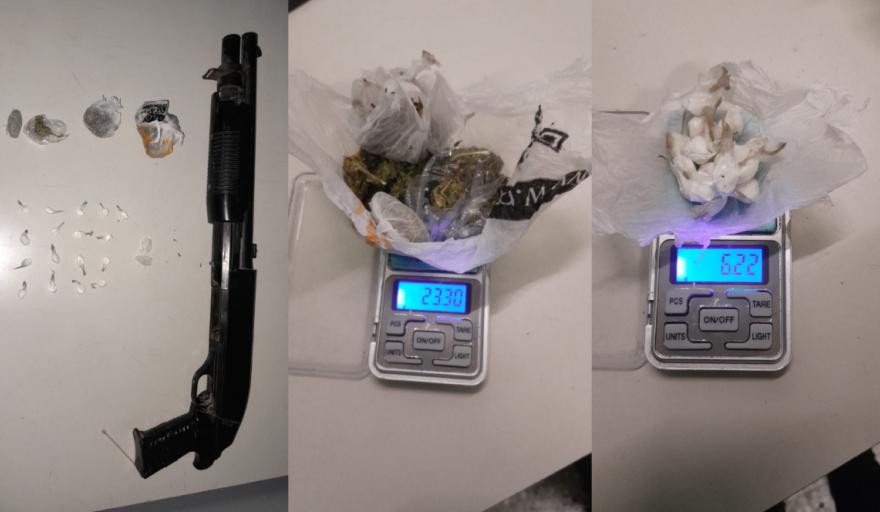 Durante la requisa, los agentes secuestraron 17 envoltorios de nylon con una sustancia blanquecina y otros 4 con material vegetal. También incautaron una réplica de escopeta y diversas herramientas, presuntamente usadadas para cometer robos bajo la modalidad "entradera" o "escruche".